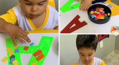 Nossas crianças exploraram o mosaico da vogal A de forma divertida e criativa.